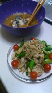 昨日は酢ガキとアスパラエノキのソテーにチャレンジ